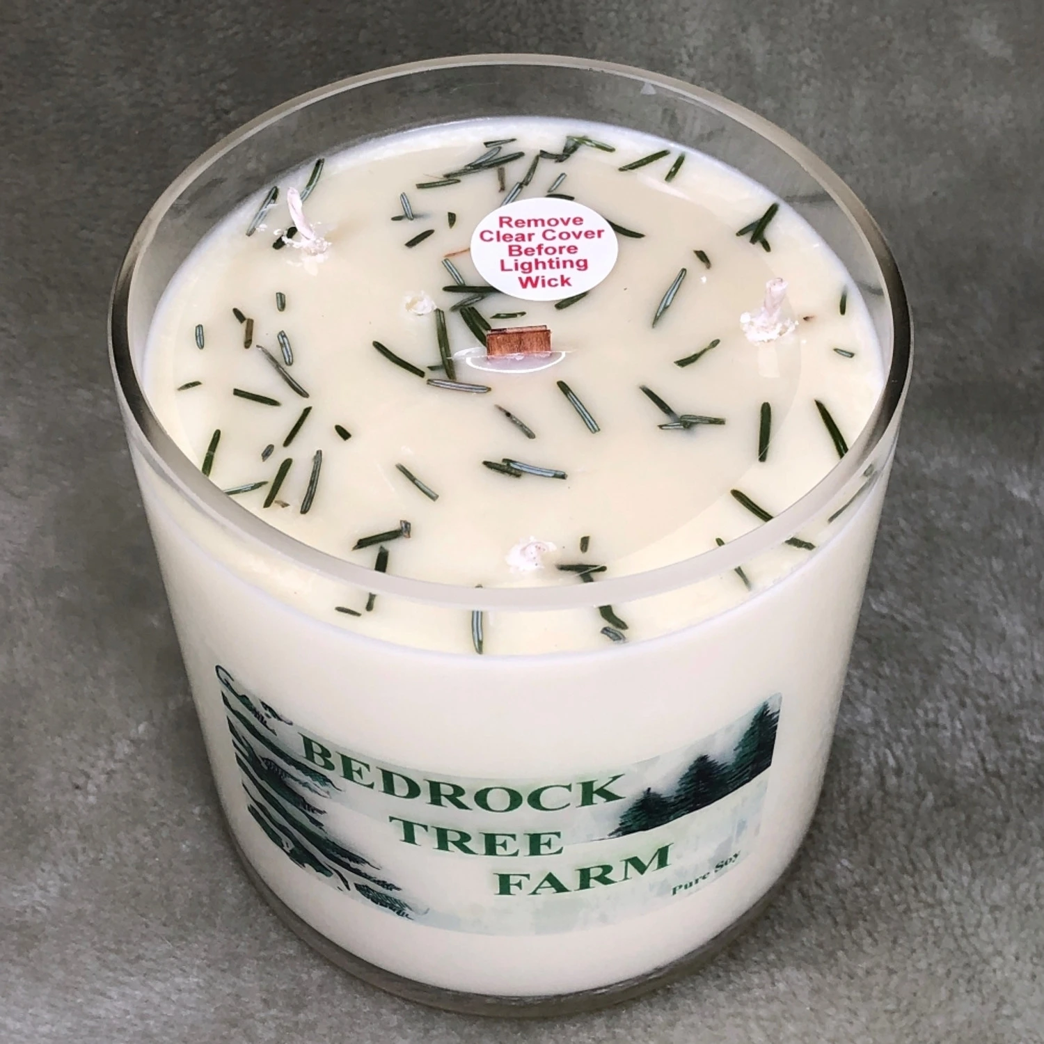 This amazing candle is sure to make your home smell like freshly cut Christmas trees! Every candle is hand poured and made with fir needles harvested from the Bedrock Christmas Tree Farm in Wakefield, Rhode Island! Each product is made with certified pure essential oils, phthalate free fragrance oils, and dyes that are formulated with eco-friendly ingredients. Made by Bedrock Tree Farm. Made of soy wax. Burn time of approximately 160 hours. Candle size 32 oz. Item #: V32NAT