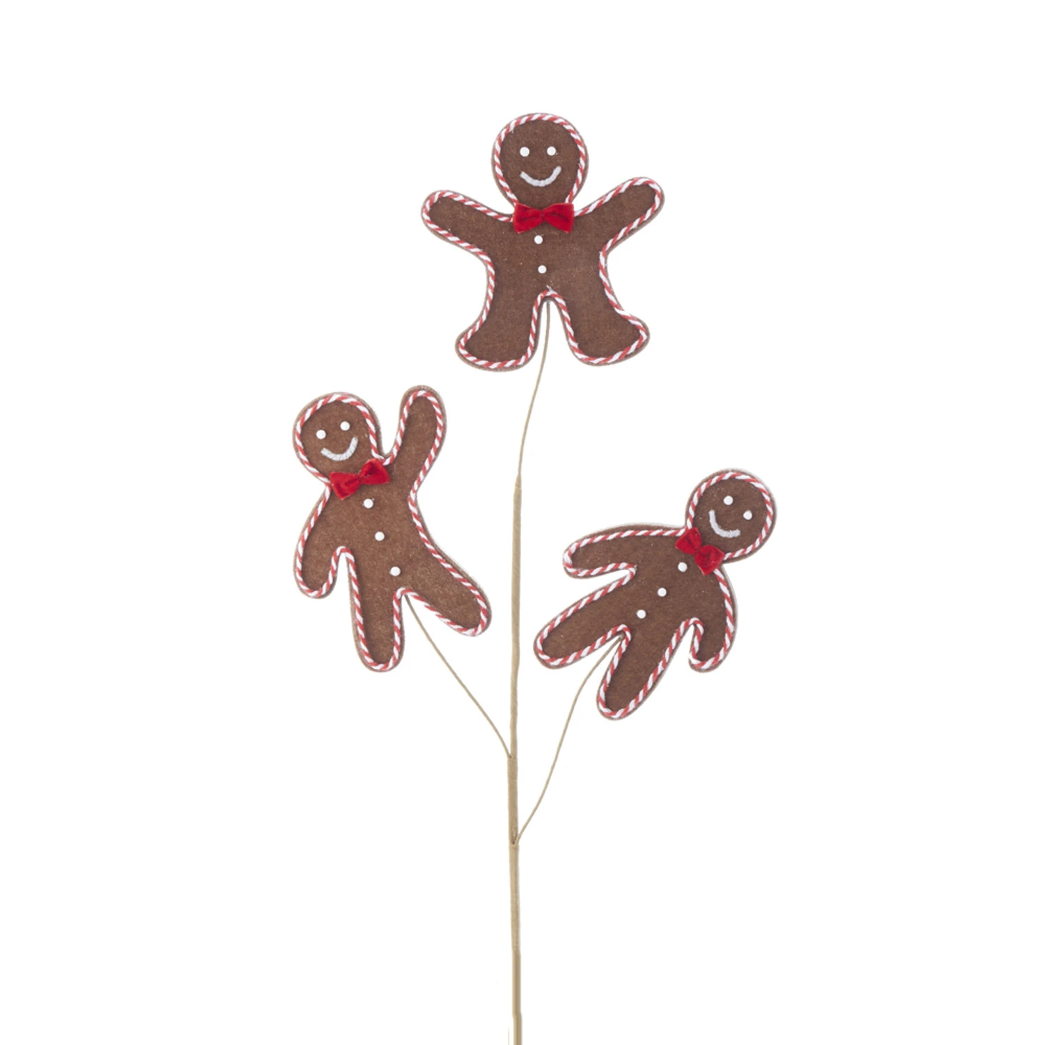 Add a few sweet treats to your tree this year! This Christmas tree pick features a trio of brown gingerbread men with red and white trim and a red bow on his neck! Made by Kurt Adler. Made of foam. Dimensions: 25″. Item #: C6958