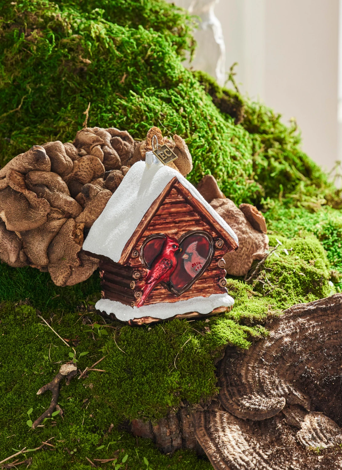 It feels so good to come home to a warm loved one after a day being in the biting cold! This ornament features a cute little log cabin birdhouse topped with fresh fallen snow and a heart shaped door while a pair of cardinals say hello to one another! Made by Raz Imports. Made of glass. Dimensions: 3.25″ L X 2.75″ W X 4″ H. Item #: 4353113