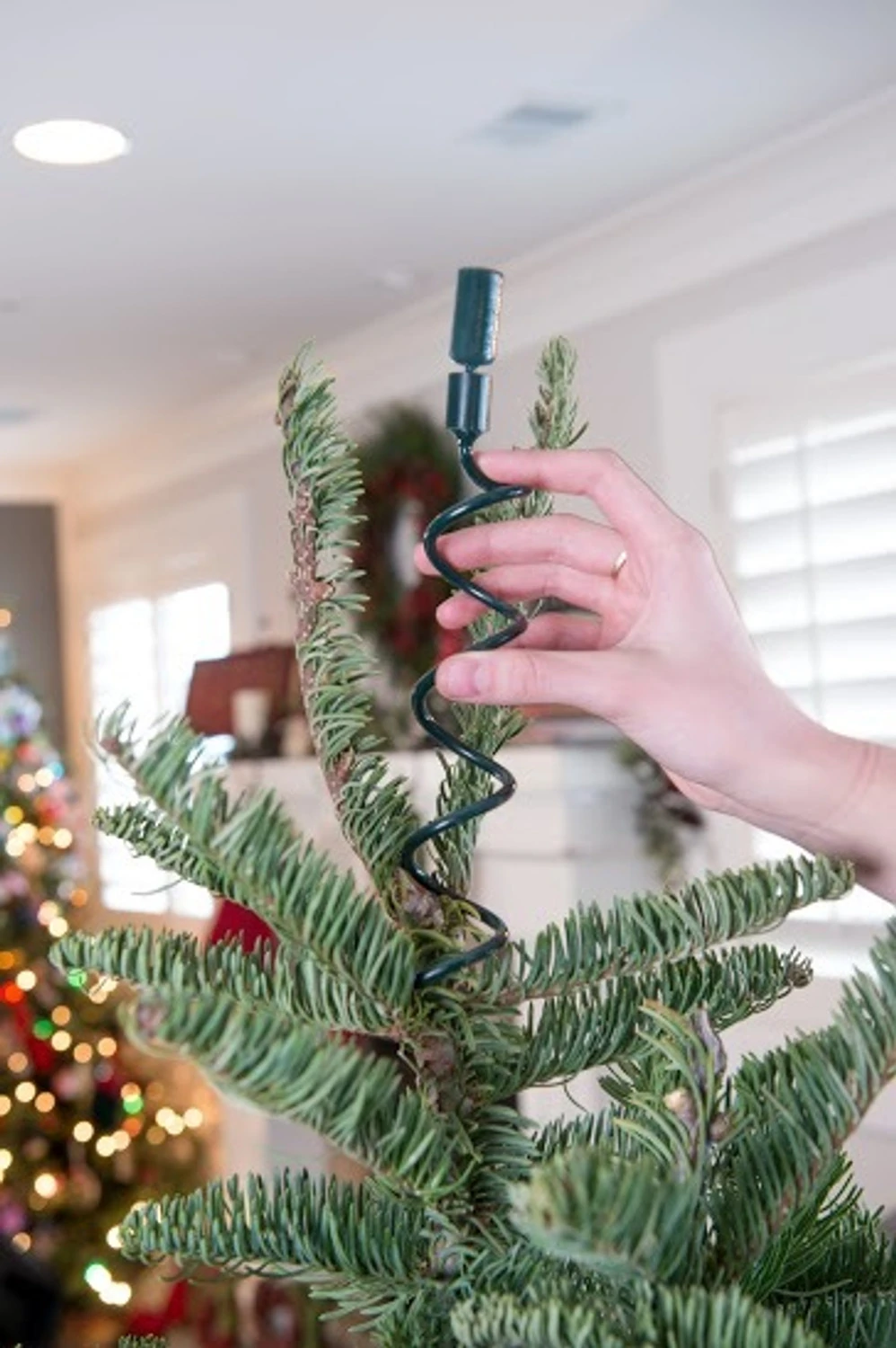 Found the perfect tree topper but unsure about how place it at the top of your tree to its full advantage? This clever and easy to use Village Lighting Christmas Tree Topper Holder has 4 mix and match attachments to fit any tree topper while an adjustable base keeps the tree topper at 90 degrees. It also features a spiral design for easy application to the top of the tree. One year warranty against manufacturer defects. Item # V-11103.